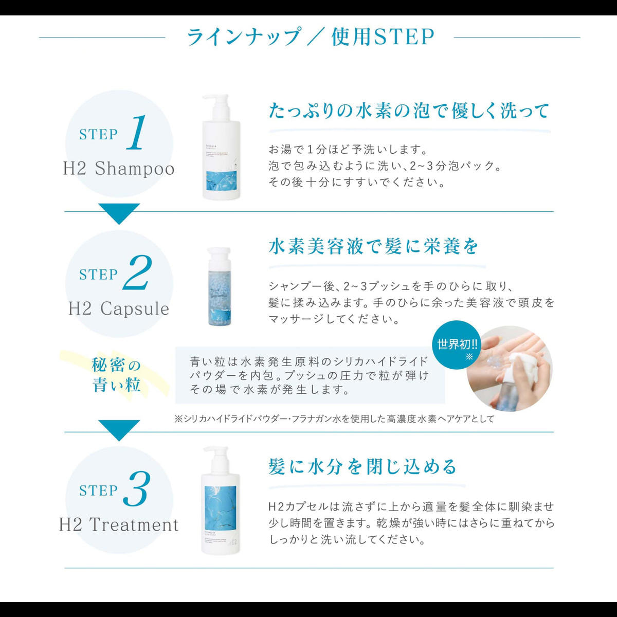 高濃度水素美容液で髪と頭皮を洗うという新発想毎日の酸化から髪と頭皮を守り、